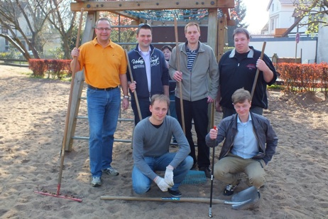 Elf Sonnenstunden am Samstag. Herrliches Frühlingswetter lud alle Hobbygärtner, Fahrrad- und Wanderfreunde in die Natur. Auch die Stadthäger Kommunalpolitiker nutzten das Wetter, zumindest CDU-Bürgermeisterkandidat Heiko Tadge und seine Unterstützer von der Jungen Union (JU). Sie beteiligten sich an der landesweiten Aktion der CDU Niedersachsen „100 Spielplätze in 100 Stunden“. Von Mittwoch bis Sonntag hatte die Landes-CDU dazu aufgerufen, Spielplätze wieder in einen spielbereiten Zustand zu bringen. Müll aufsammeln, Unkraut zupfen und Spielgeräte in Ordnung bringen.